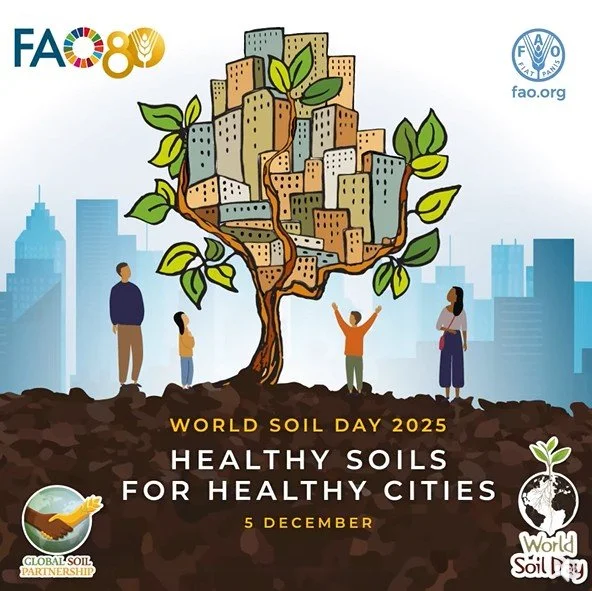 FORUM: "Healthy Soils for Healthy Cities." World Soil Day 2025. Urban soils provide essential ecosystem services: they support food production, filter water, store carbon, regulate temperatures, and sustain biodiversity. However, soil sealing, pollution, and urban expansion threaten these benefits, increasing flood risks, intensifying heat islands and threatening food production in peri-urban land. Solutions exist. De-sealing, green roofs, urban vegetation and agriculture, composting, and sustainable urban planning can turn soil into opportunities to strengthen climate action, improve public health, reduce disaster risks, and foster inclusive and greener cities. It’s a day to reflect on the importance of soil in the natural system and celebrate the actions being taken worldwide to safeguard it. This World Soil Day, the spotlight is on soil as a critical resource for life on Earth. Healthy soils play a key role in maintaining biodiversity, reducing erosion and pollution, improving water filtration, and building resilient and sustainable food systems. They also contribute significantly to climate action through carbon sequestration, Let's underscore the importance of accurate soil data and information in understanding soil characteristics and supporting informed decision making on sustainable soil. WSD is a unique global platform that not only celebrates soils but also an occasion to empower and engage citizens around the world to improve soil health. Our planet’s survival depends on the precious link between soil and water. Over 95% of our food originates from these two fundamental resources. Soil and water are vital for nutrient absorption by plants, binds our ecosystems together. This symbiotic relationship is the foundation of our agricultural systems. However, in the face of climate change and human activity, our soils are being degraded, putting excessive pressure on our water resources. Erosion disrupts the natural balance, reducing water infiltration and availability for all forms of life. Sustainable soil management practices, such as minimum tillage, crop rotation, organic matter addition, and cover cropping, improve soil health, reduce erosion and pollution, and enhance water infiltration and storage. These practices also preserve soil biodiversity, improve fertility, and contribute to carbon sequestration, playing a crucial role in the fight against climate change. Follow the conversations with the hashags: #worldSoilDay, #5December, #soilandwater, #soil.