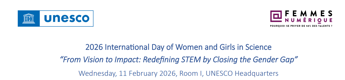 EVENTS: At UNESCO Headquarters (Room I), on wednesday, February 11Th, from 9:30 a.m. to 12:30 p.m. | 2:00 p.m. to 5:00 p.m. to mark the 2026 IDWGS celebration, the special hybrid event will take place under the theme: "From vision to impact: Redefining STEM by closing the gender gap". The 11th anniversary of the International Day of Women and Girls in Science will bring together Member States, early-career and accomplished scientists, stakeholders from the public and private sectors, UNESCO scientific networks and Chairs, journalists, as well as students. Building on the 2024 UNESCO Call to Action “Closing the Gender Gap in Science” and the 2025 “Imagine a world with more women in science #EveryVoiceInScience” campaign, the 2026 celebration shifts the focus from recommendations and reflection to showcasing existing good practices and solutions for building more inclusive Science, Technology, Engineering and Mathematics (STEM) ecosystems., the event will highlight concrete actions and good practices that are driving more inclusive STEM ecosystems worldwide..+ It will bring together rising and renowned scientists (including from the L’Oréal-UNESCO For Women in Science Programme and OWSD Chapters). Organized in collaboration with Femmes@Numérique, discussions will place a particular emphasis on new and emerging technologies and their role in closing the gender gap in STEM. This edition’s roundtables will highlight the positive impact of inclusivity through personal testimonies and evidence-based discussions. Panelists from diverse regions and professional backgrounds will share concrete measures that have proven effective in reducing the gender gap in their respective fields – health research, cybersecurity, artificial intelligence, and scientific entrepreneurship - and will explain the conditions that enabled their success. The event will place a particular emphasis on the use of new and emerging technologies in STEM fields and their impact on the gender gap. By bringing together expertise from across UNESCO’s sectors, the discussions will explore the growing influence of digital transformation on scientific research and innovation, from education to employment, and the need for gender-transformative approaches to ensure that technological progress benefits everyone.