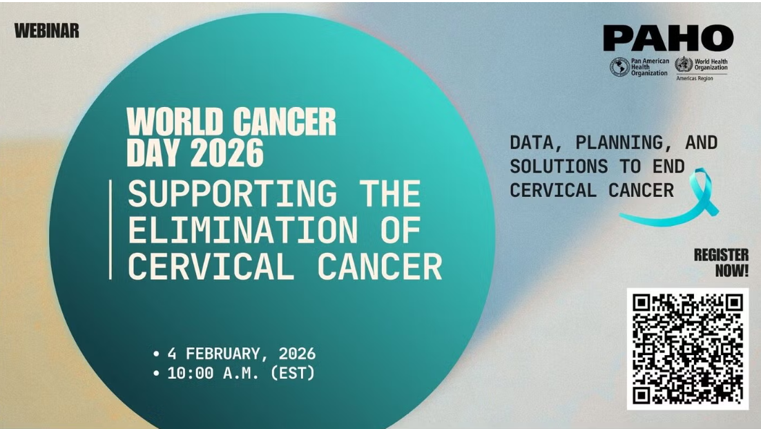EVENTS: Join the WHO/PAHO on Wednesday, February 4th at 10:00 a.m. (Washington DC, or EST) to participate to the World Cancer Day 2026 event entitled "Supporting the elimination of cervical cancer". This event will bring together experts and representatives from key organizations to address the challenges and opportunities in the fight against cancer, sharing progress, experiences, and establishing commitments to improve access to medicines in the region. Organized in commemoration of World Cancer Day, this webinar highlights the initiative to accelerate the elimination of cervical cancer in Latin America and the Caribbean. The event emphasizes the specific goals of the elimination initiative: achieving 90% HPV vaccination coverage, 70% screening with a high-performance test, and 90% treatment coverage for precancerous lesions and invasive cancer by 2030. This webinar aims to strengthen the fight against cancer in the region by promoting effective collaboration and joint actions to reach ambitious targets in the prevention, diagnosis, and treatment of cervical cancer.
