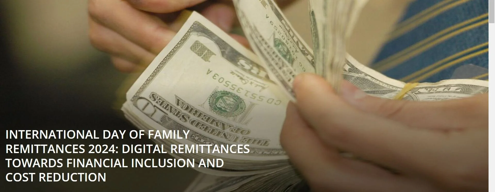 EVENTS: On June 16th to mark the International Day of Remittances 2024, the International Fund for Agricultural Development (IFAD), the United Nation Development Programme (UNDP), the Office of the Special adviser on Africa (OSAA) and The World Bank will organize a event. In observance of the International Day of Family Remittances (IDFR), the IOM will join the United Nations system in commending the determination and resilience of the human spirit as evidenced by migrant workers. Further, IOM calls upon member states, international organizations, and the private sector to facilitate safe and regular pathways of migrants and to provide for their financial and digital inclusion, the advantage of fast, cheaper and safer formal remittance channels to realize their full potential as actors, and financiers, for sustainable development.