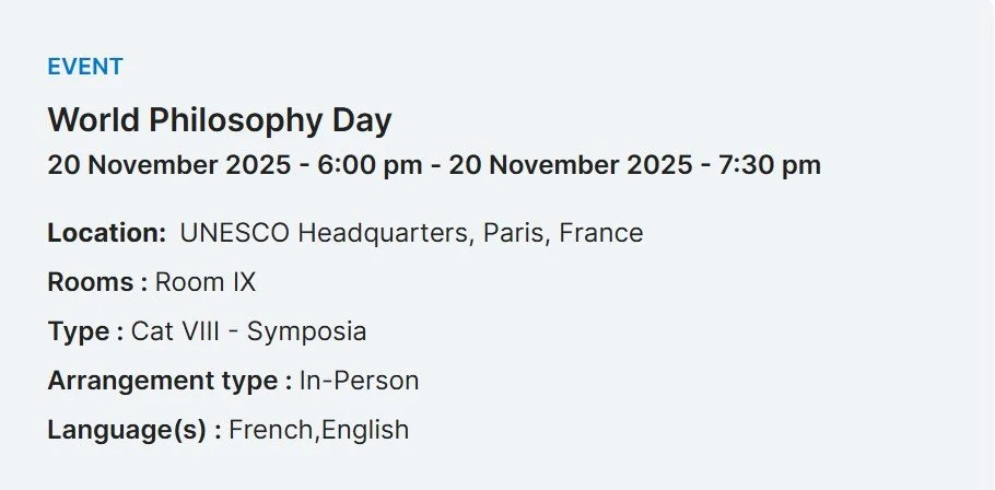 EVENTS: On November 20th, from 6:00 pm to - 7:30 pm will be held a symposium to mark the World Philosophy Day 2025 at UNESCO Headquarters, Paris, France in the Room IX. A keynote address will be delivered by Professor Ingrid Robeyns, a Belgian-Dutch philosopher and economist who holds the Chair in Ethics of Institutions at Utrecht University. The celebration of the World Philosophy Day 2025 will initiate a dialogue on the ethics of inequality and the values shaping future societies. This event supports the UNESCO MOST Programme’s mission to help policymakers rethink prevailing socio-economic paradigms, inspiring action toward just, inclusive, and sustainable societies. This year’s event will build on the discussions started through the Thought Leadership Series, which has brought together leading thinkers in the Social and Human Sciences throughout 2025 to explore critical societal challenges and innovative solutions. World Philosophy Day will deepen this conversation by examining the moral limits of wealth and the ethical principles guiding alternative socioeconomic futures. Register to participate and Follow the celebration online