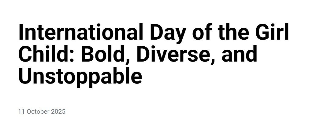 FORUM: “We are Here: Bold, Diverse, and Unstoppable – DemandingAction for Girls’ Rights.” International Day of the Girl Child 2025. The discussion will focus on key issues affecting girls, such as their participation in social and political life, their education, eliminating all forms of violence and discrimination against them, championing their leadership in the climate crisis, and financing for the realization of their rights. As we honor the 30th anniversaries of the Beijing Declaration and Platform of Action and of the World Programme of Action for youth, these engagements are the basis of a crucial movement toward the equality and empowerment of young women and girls. Girls Speak Out 2025 is not only a celebration, but also a policy platform. It is where commitments are made, heard, and expected to be fulfilled. Let’s go beyond recognition to real action. Let’s ensure that when girls speak, the world doesn’t just listen—it respond. Follow the conversation with the hashtags:#IDG2024, #DayoftheGirl, #IDGxWGG, #GirlsRightsNow, #11DaysofAction, #GirlsVision4Future #ActionforGirlsRights #GirlchildDay, #11october, #InternationalDayoftheGirlChild.